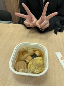今天早退了英语课,美美一起散步坐地铁回的家,路上发现比平常早了一小会,于是去便利蜂请诺诺吃了她想吃很久的炸蛋,味道不算难吃,就感觉没什么味道,但素和诺诺吃很开心!嘿嘿!